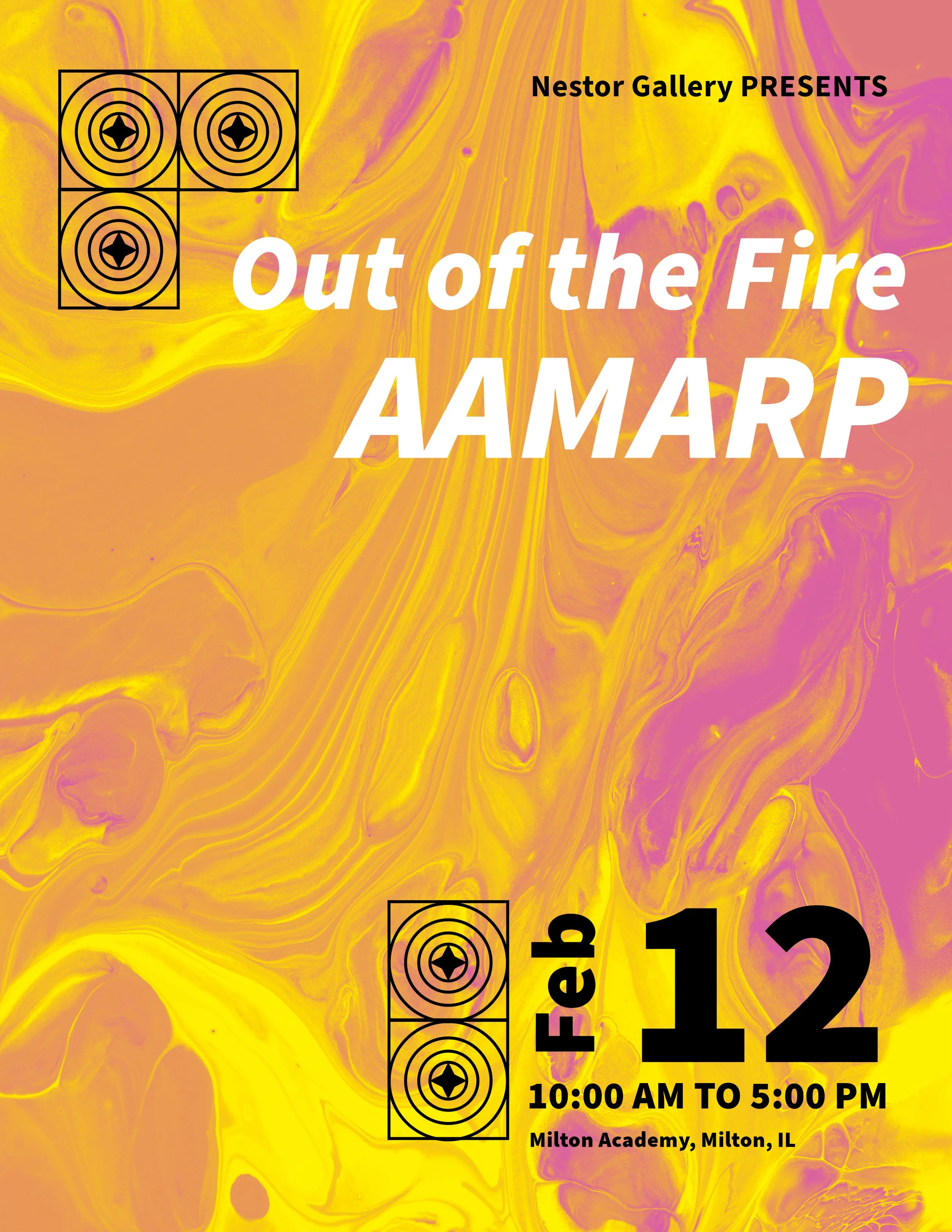 "Out of the Fire" represents the transformative journey of resilience and rebirth within the world (A.A.M.A.R.P.) The African American Master Artist Residency Program has been able to sustain since 1970’s. A dreamchild of the artist Dana Chandler, the imagery of fire symbolizes the trials and tribulations that our ancestors endured, from the harsh realities of slavery to the ongoing struggles for justice and equality. Yet, just as fire can destroy, it also has the power to purify, cleanse, and give birth to new life. The reality of black art being constructed within a time in which institutionalized racism in local and national museums and galleries remain absent of black art, captures the moment of emerging from the flames, embodying a sense of strength, survival, and regeneration.